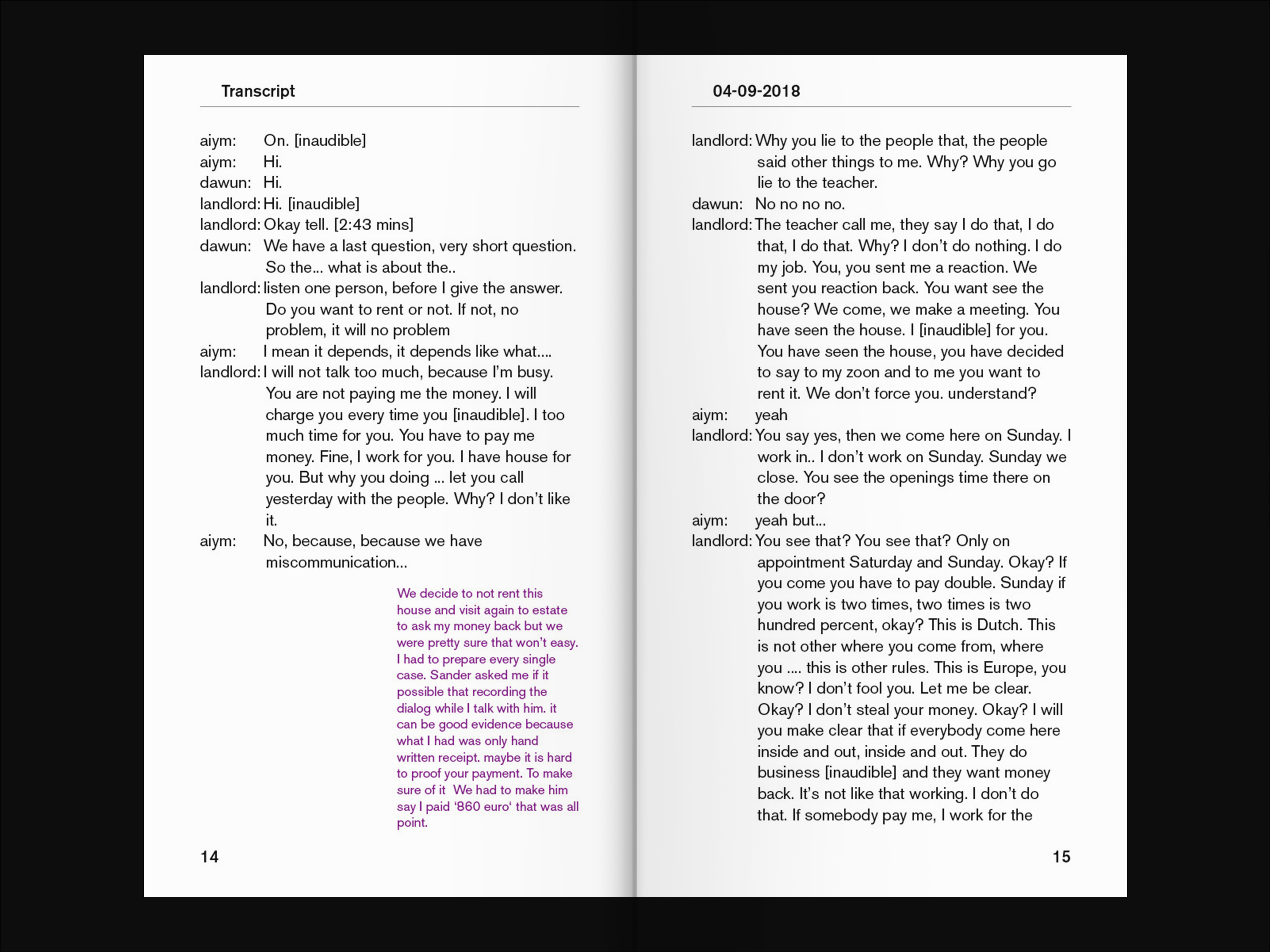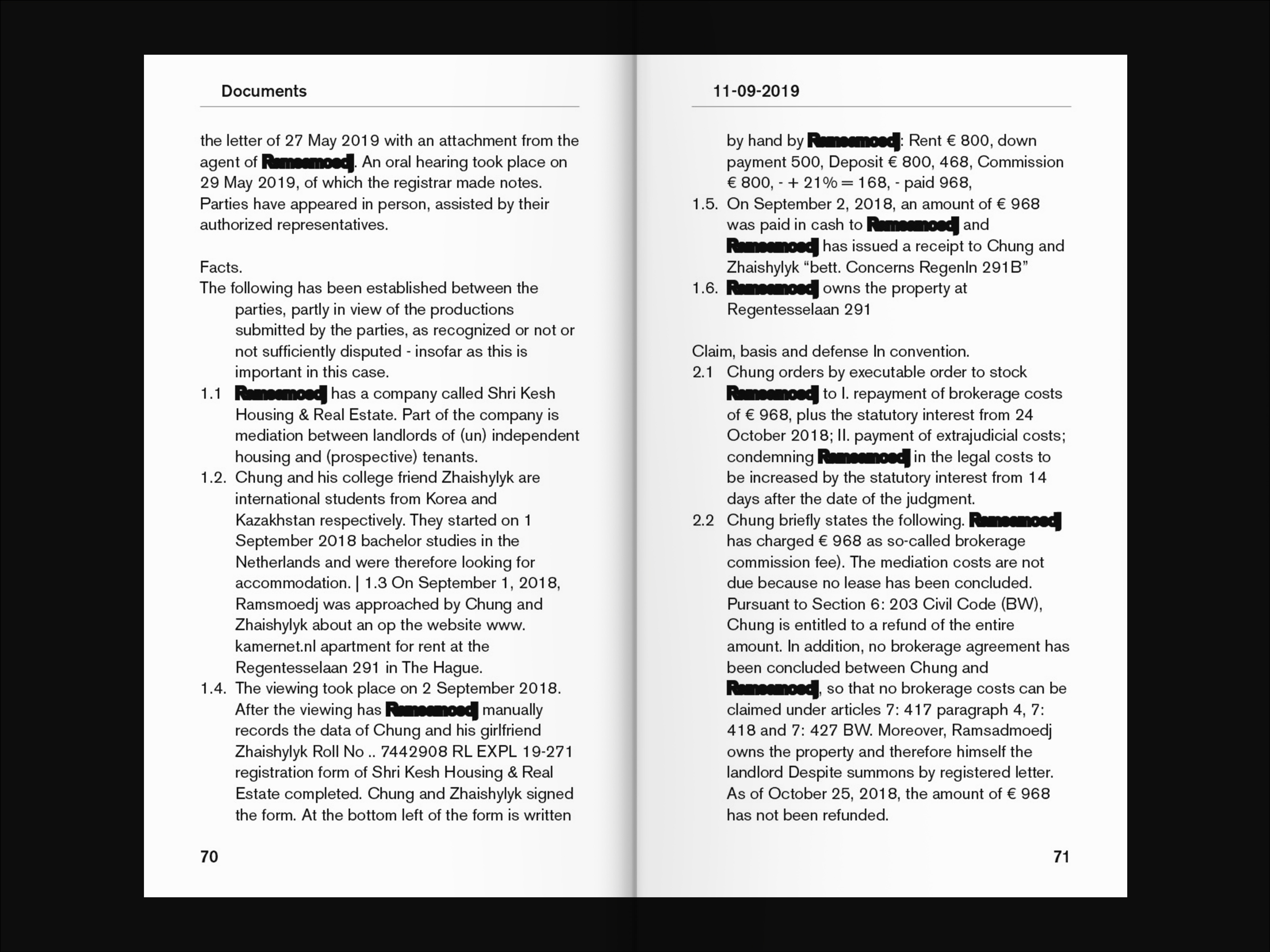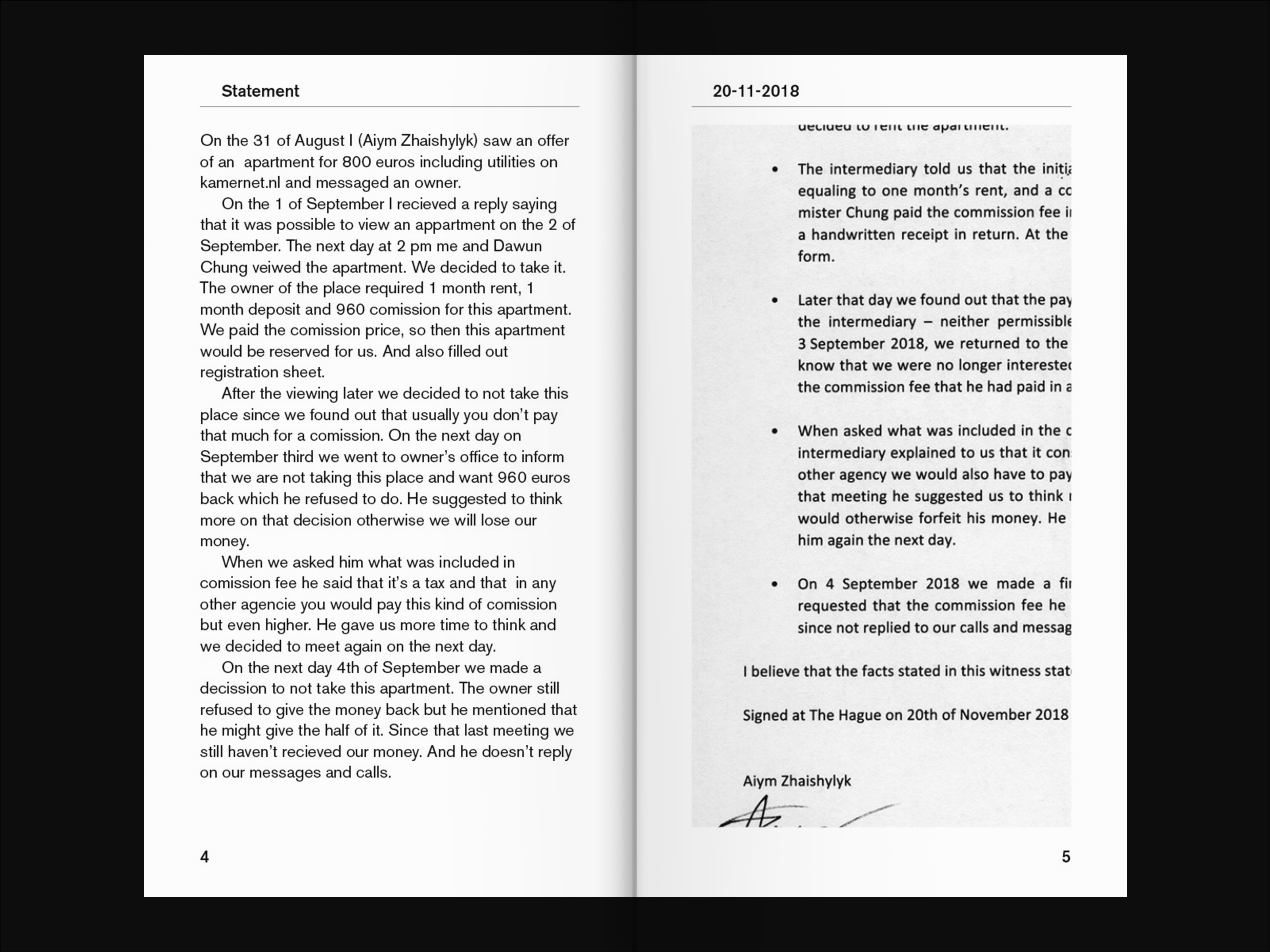 a book based on personal story which was 'housing scam' in den Haag. It relates to students, foreigners, and people who want to rent a house.