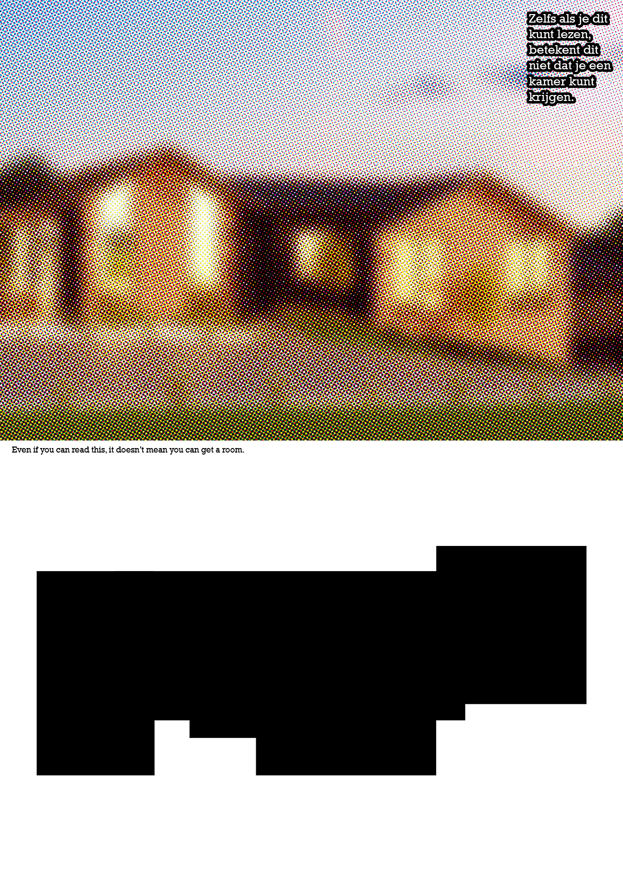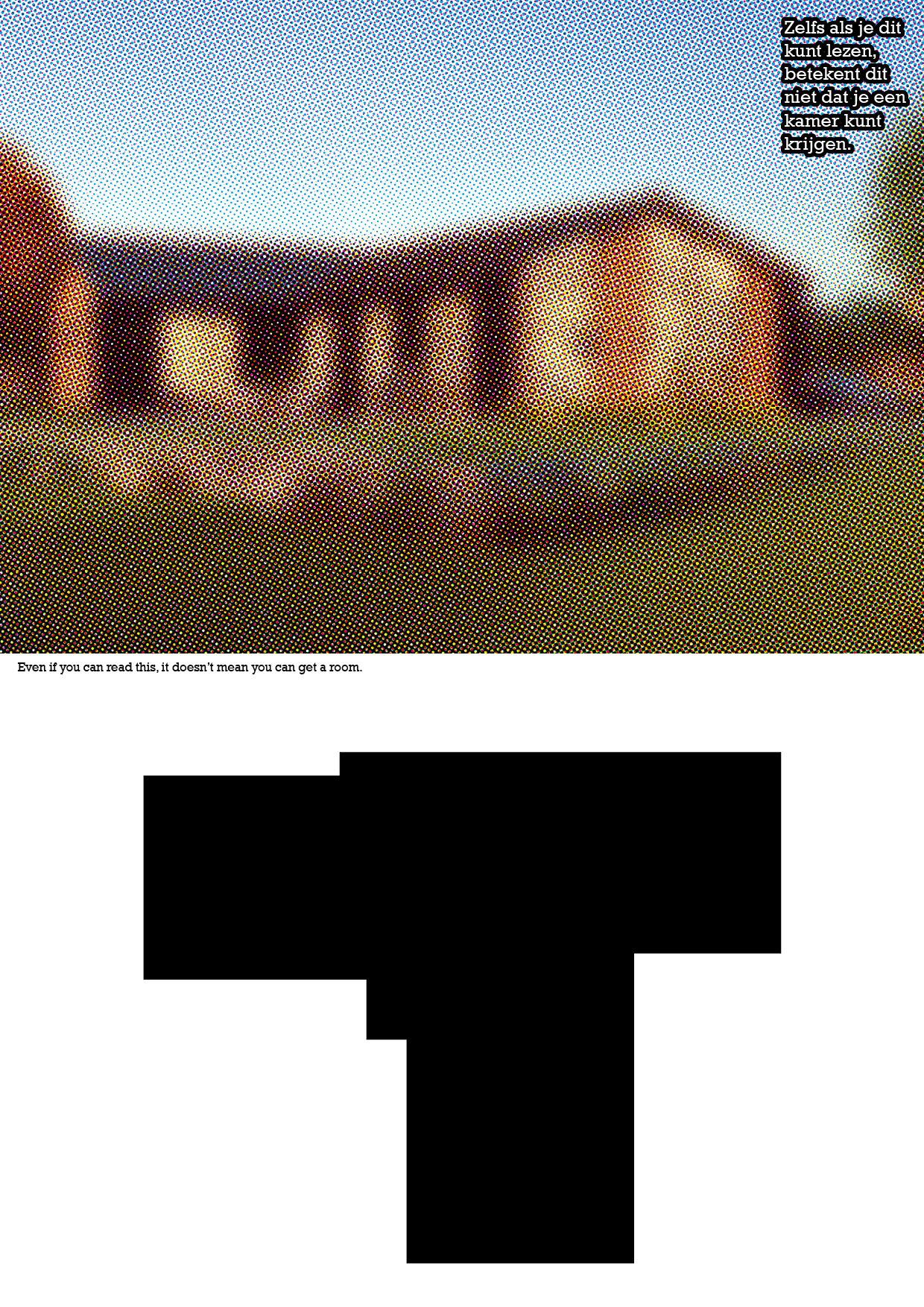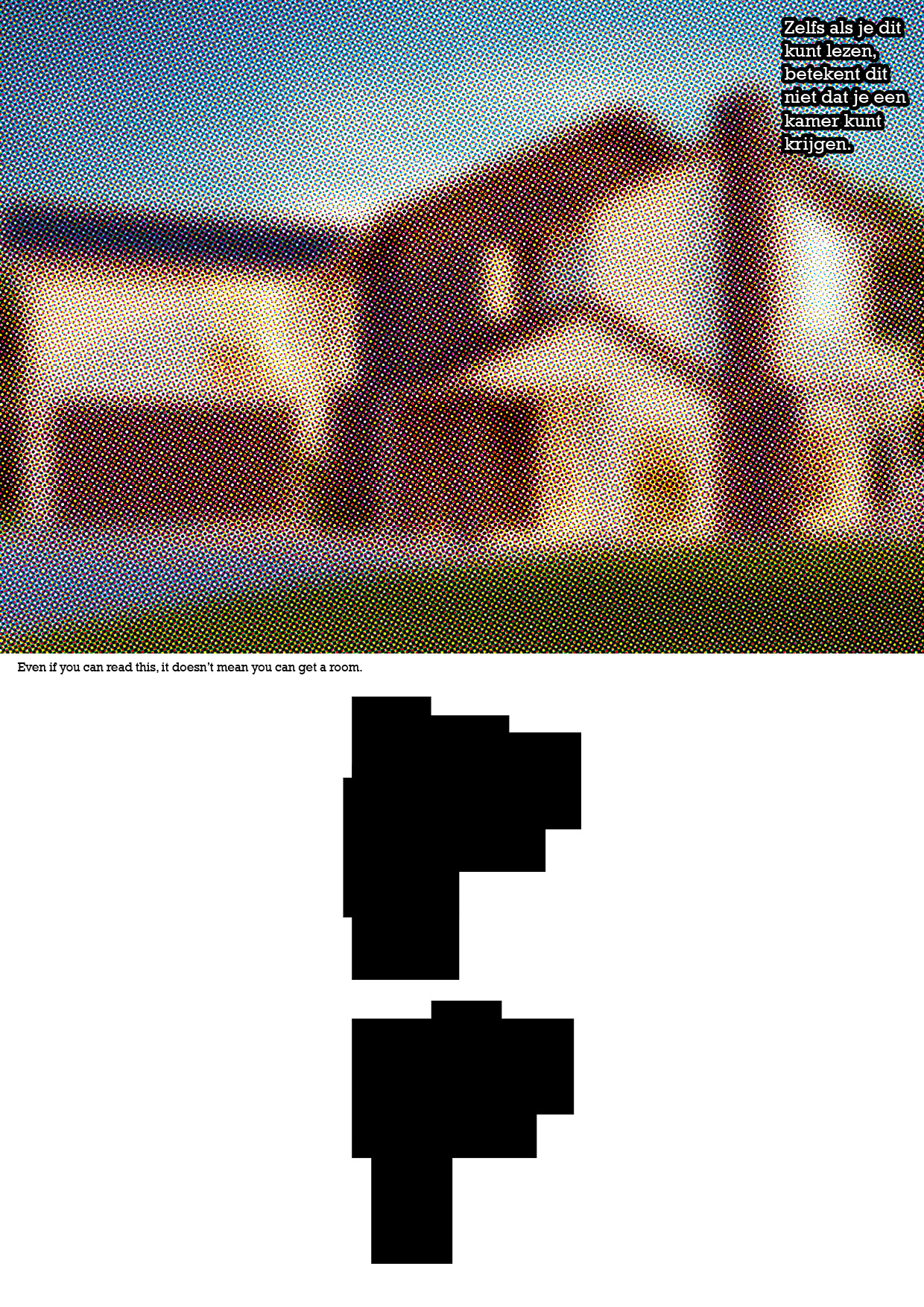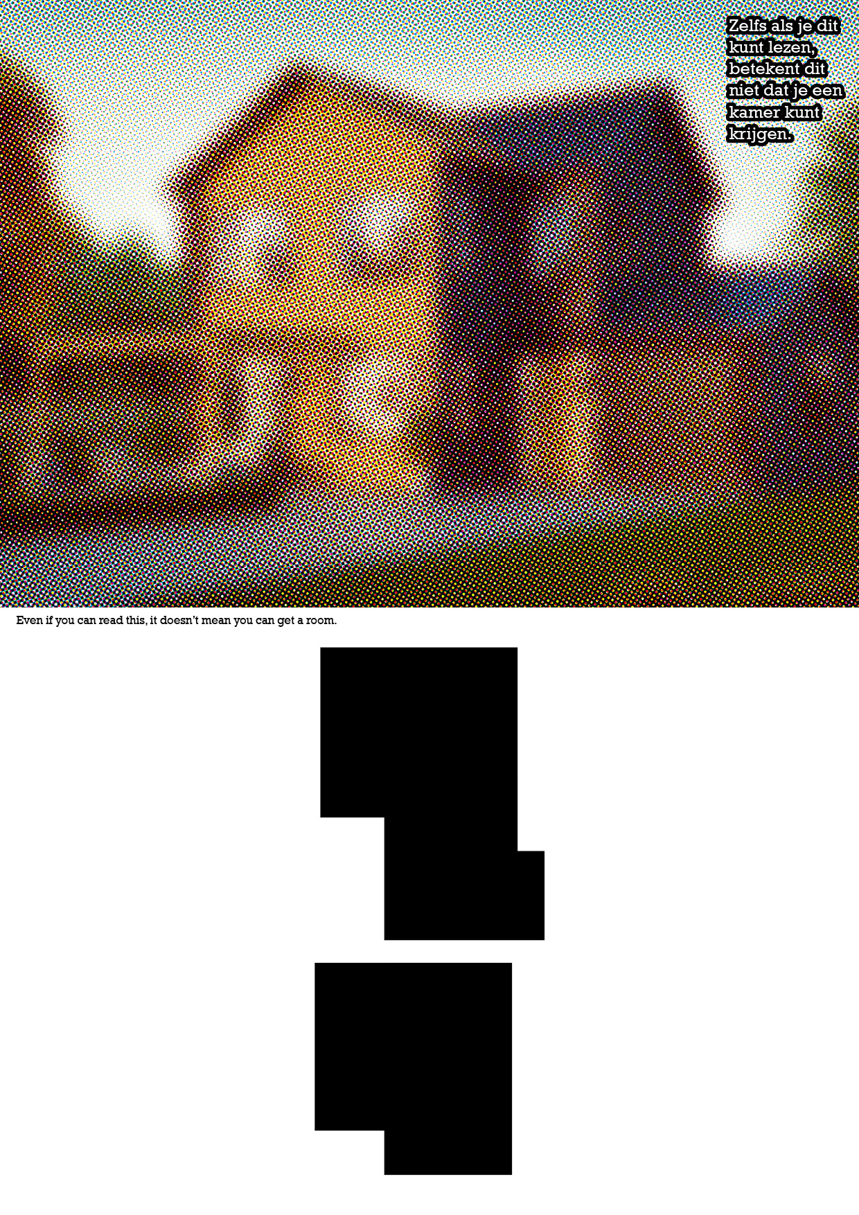The image of the house seems a foggy, illusion, or fake. Below there is an image of the house's floor plan. There is written in dutch 'Even if you can read this, it doesn't mean you can get a house' and it is repeated in English in the middle.