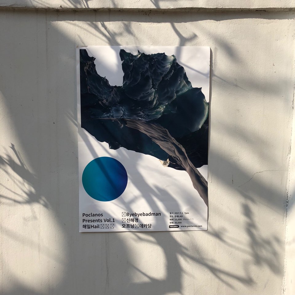 All of the musicians are new singers or bands and they are trying to do their originality. The title 'Hail'(tsunami) was visually expressed to show their desire to create a new flow. The new flow always accompanies the unknown, so the error mark is placed next to the names.